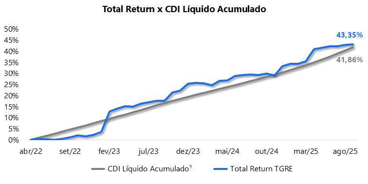 O TGRE é um fundo imobiliário híbrido cujo portfólio é composto por ativos de crédito (CRIs) e participações societárias (equity) em ativos cujo propósito é o desenvolvimento imobiliário, essencialmente, de empreendimentos residenciais.